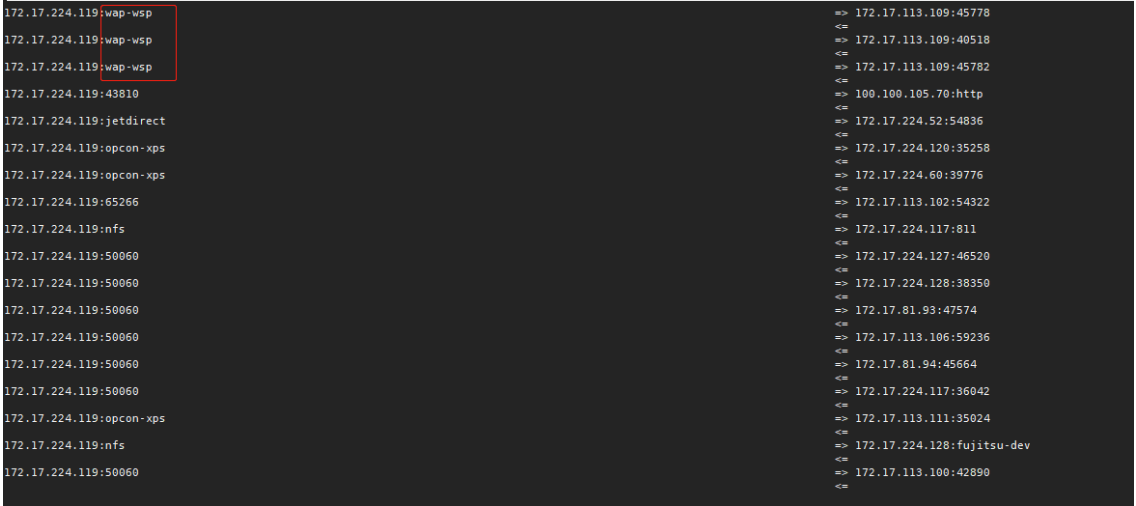 tcp6 0 0 172.17.113.108:59380 172.17.224.58:22229 ESTABLISHED -