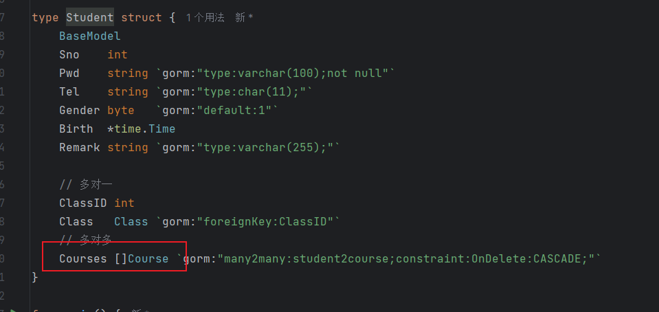 多对多的时候,上面gorm会自动创建第三章关联表 student2course,当然也可以通过手动创建结构体实现,但是这样不利于自动获取值。