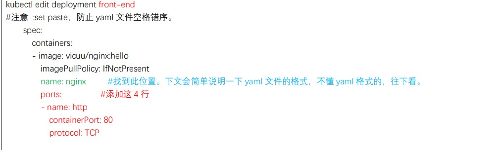 请重新配置现有的 deployment front-end 以及添加名为 http 的端口规范来公开现有容器 nginx 的端口 80/tcp。 创建一个名为 front-end-svc 的新 service,以公开容器端口 http 配置此 service,以通过各个 Pod 所在的节点上的 NodePort 来公开他们。